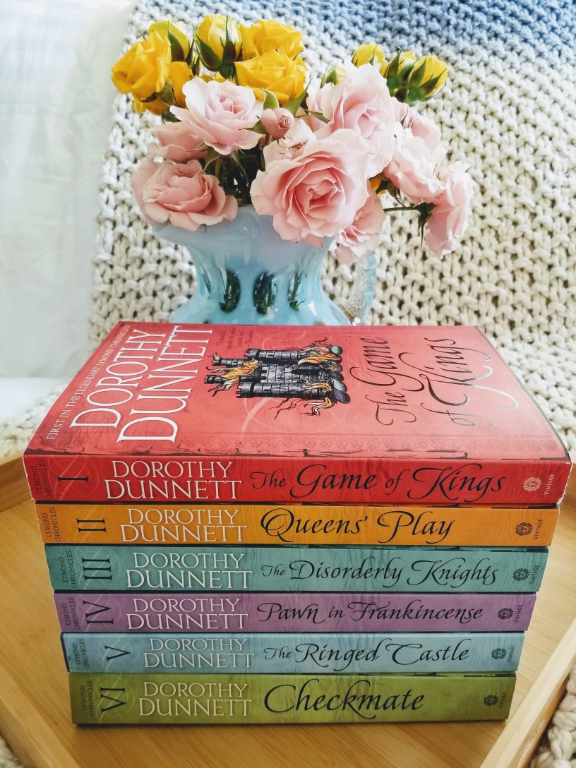 Today I have a review of The Game of Kings by Dorothy Dunnett available now from Vintage Anchor/Doubleday Books. I was sent complimentary copies of the entire series (huge thanks!). The newly designed covers are so pretty and distinctive, and I’ll already tell you, I was thrilled with my first venture into 1500s Scotland.